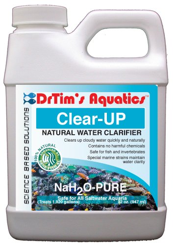 Clear-UP Natural Water Clarifier Saltwater Aquaria Clear-UP clears cloudy white water. Clear-UP is a 100% natural water clarifier, consisting of beneficial bacteria, with the ability to 'floc' small particles from the aquarium water. The result is clear water without the use the harmful chemicals contained in other water clarifiers such as alum (that contains aluminum) and polyacrylamide (a potentially toxic chemical). Directions: Shake well before using. Dosing: Add 5 ml (a capful) per 10 gallons of aquarium water. For best results temporarily turn the filter off, add Clear-UP over the entire aquarium water surface, and wait 10-15 minutes for the flocs to form and then turn the filter back on. In extreme case, the water may not clear-up for 24 hours